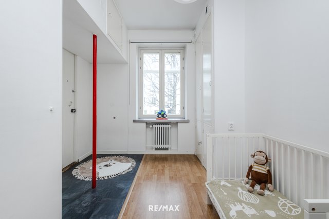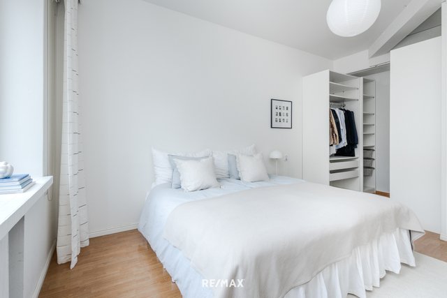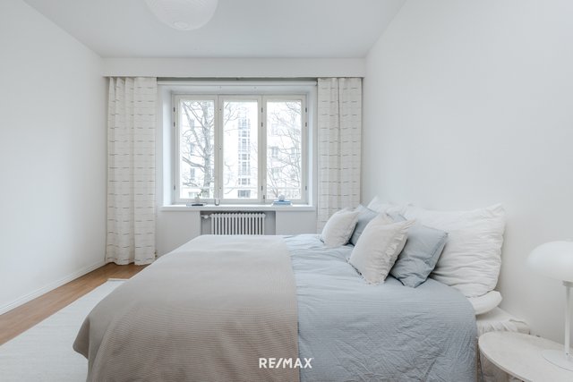 Makuuhuoneet ovat talon sisäpihan puolella. Suurin makuuhuone on erittäin tilava ja siellä on erillinen avonainen vaatehuone, johon voit halutessasi laittaa lasiovet tai verhot ja näin saada erillisen walk-in closetin. Toinen makuuhuone on kompakti entinen palvelijanhuone, mutta tilaa on kuitenkin säilytykselle, sängylle ja vaikkapa työpöydälle. Kolmas makuuhuone on käytävän päässä, ja sieltä on kätevästi kulku tuuletusparvekkeelle. Kaikista makuuhuoneista on näkymät taloyhtiön remontoidulle sisäpihalle, jossa on talon asukkaille viihtyisä grilliterassi. Tilavasta eteisestä on kulku kylpyhuoneeseen, joka on hyvän kokoinen sekä erilliseen wc-tilaan. Asunnossa on säilytystilaa niin kiinto- ja irtokaapeissa kuin seinään sisään upotetuissa piilokaapeissa. Erikoisuutena täällä on olohuoneen kassakaappi!
