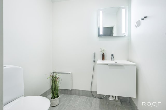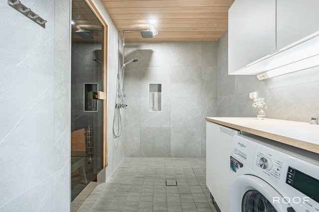 - Suihku, pesukoneliitäntä, lattialämmitys, ja kodinhoitokaapisto