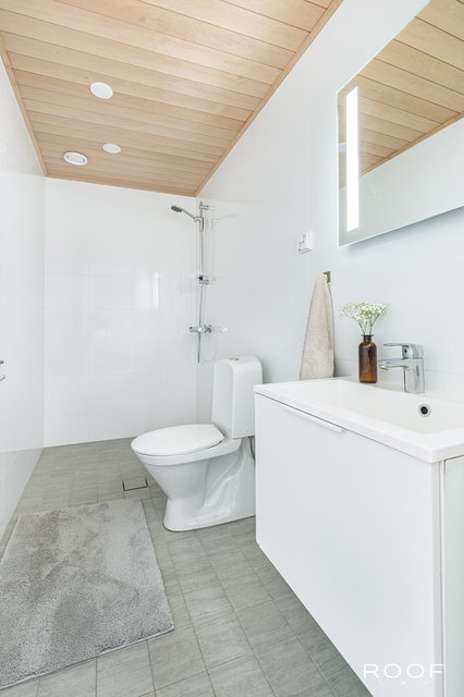 - Alakerran wc: Varustus: Wc-istuin, suihku, allaskaappi, pesuallas, peili, lattialämmitys. Yläkerran wc: Varustus: Wc-istuin, pesuallas, allaskaappi, peili.
