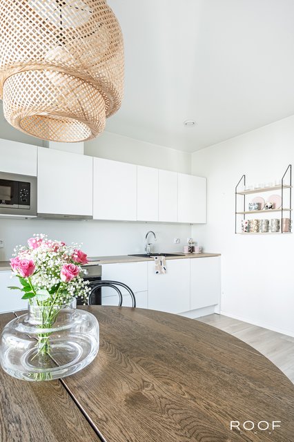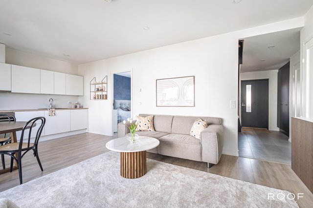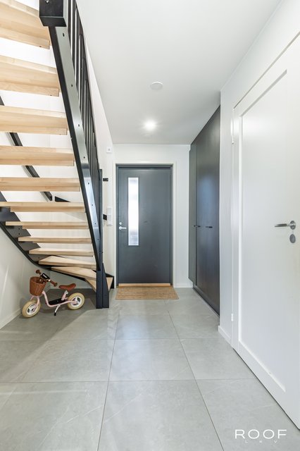 Vuonna 2019 valmistunut valoisa paritalokoti tarjoaa toimivaa tilankäyttöä ja laadukkaita ratkaisuja kahdessa kerroksessa. Sisään tullaan tilavaan eteiseen, jossa säilytystila on huomioitu vaatekaapein. Kodin sydämenä on yhtenäinen keittiö-olohuonekokonaisuus, jonka keskiössä on tyylikäs Puustellin keittiö. Alakerrassa sijaitsee lisäksi kylpyhuone kodinhoitoalueineen, oma sauna sekä erillinen wc, josta löytyy myös toinen suihku. Päämakuuhuoneen yhteydessä on tilava vaatehuone ja alakerran pienempi makuuhuone sopii mainiosti lasten- tai työhuoneeksi.