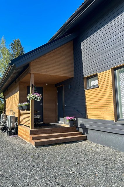 - Sähkönkulutus 12900 kWh/ (toteuma 2024) sisältäen talous- ja lämmityssähkön sekä sähköauton latausta noin 3000 kWh/v. Keskimääräinen sähkönkulutuskustannus on noin 152,5 €/kk (toteuma 2024) sisältäen sähköenergiamaksut (7,43 s/kWh) ja sähkönsiirtomaksut perusmaksuineen sekä sähköveron. Sähkö-, vesi-, jätevesi- ja puhtaanapitokulut kulutuksen mukaan. Kulutusperusteiset kustannukset voivat vaihdella merkittävästikin riippuen mm. sopimuksista, kulutustottumuksista ja henkilömääristä (nykyiset toteumat kolmen henkilön käytöllä). Todelliset kustannukset voivat siis olla ilmoitettua suuremmat tai pienemmät.