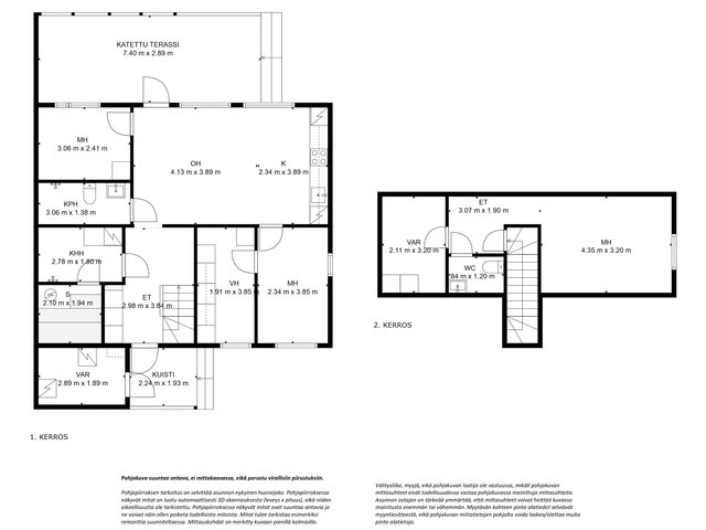 - Pinta-ala ei ole tarkistusmitattu ja todellinen pinta-ala voi olla suurempi tai pienempi, kuin ilmoitettu