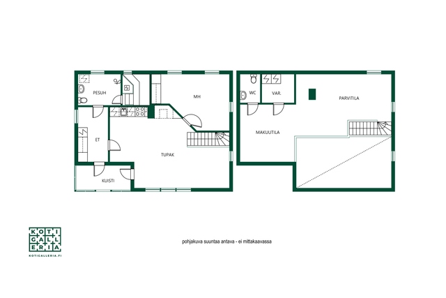 tupakeittiö+mh+kph/wc+sauna+nukkumaparvi+wc+parveke