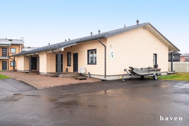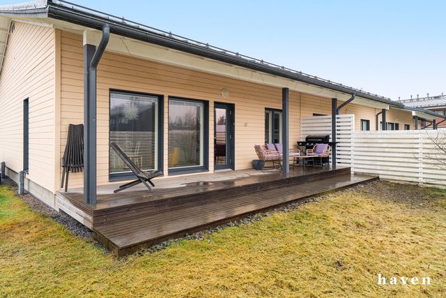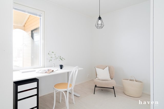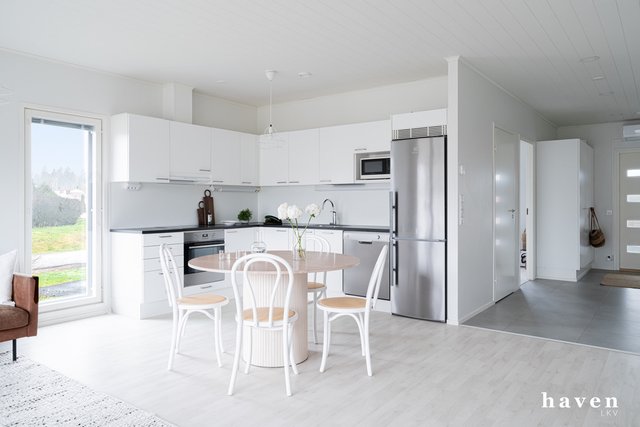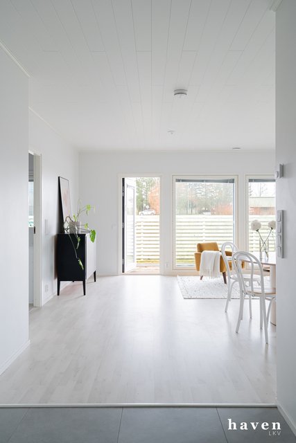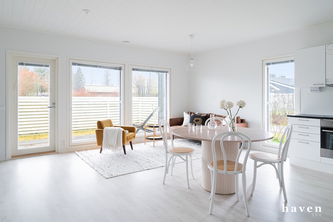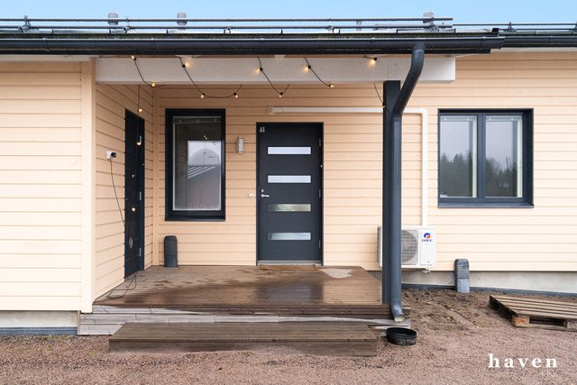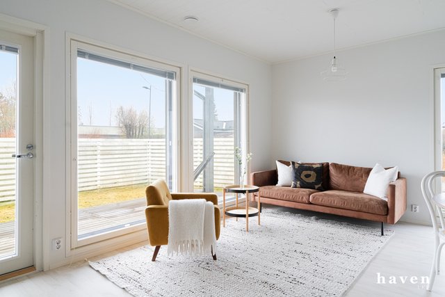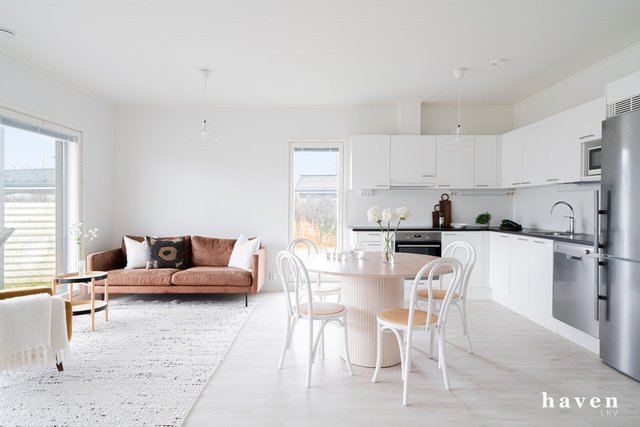 Tervetuloa tutustumaan vuonna 2019 valmistuneeseen rivitalon päätyasuntoon, joka hurmaa tyylillään ja muotoilullaan. Asunnossa korostuu rennon tyylikäs, maanläheinen ja ilmava arkkitehtuuri, käytännöllisyyttä unohtamatta. Pohjaratkaisu on toimiva sekä loppuun saakka mietitty ja viimeistelty. Avoimet ja valoisat asuintilat sijoittuvat yhteen tasoon.