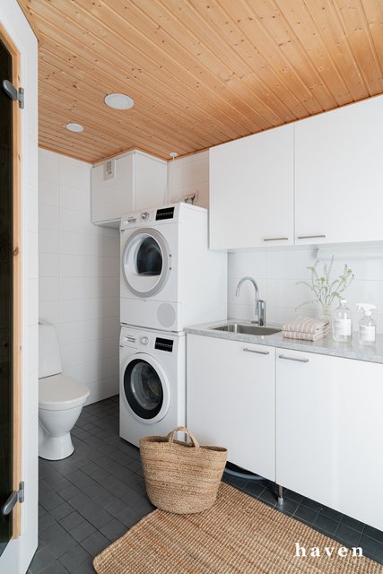 - Kylpyhuoneen yhteydessä hyvät tilat pyykkihuollolle.