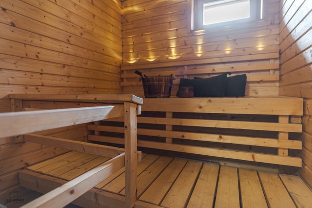 - Lattia: laatta. Seinät: puu. Kiukaan tyyppi: sähkökiuas.