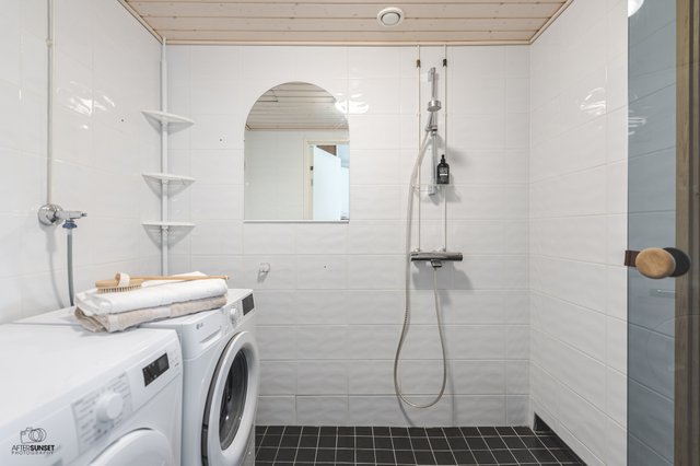 - Varustus: suihku. Lattia: laatta. Seinät: kaakeli.