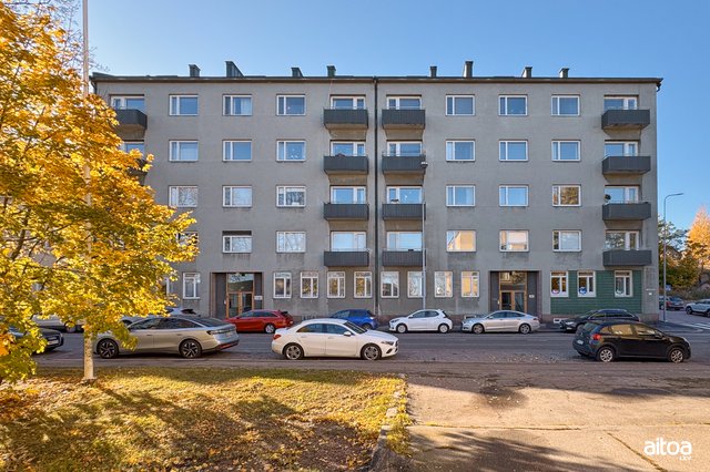 Kotkan keskustassa, meren ympäröimällä Kotkansaarella, sijaitsee tämä valoisa ja tilava 96,5 m²:n asunto. Vuonna 1938 valmistuneen talon asunto on neljännessä kerroksessa, jossa hissille on vain muutama porras. Läpitalon valoisa asunto, korkeine huoneineen tarjoaa väljät ja reilut tilat perheelle. Asunnossa on kaksi parveketta, joissa voit nauttia aamukahvia tai rentoutua työpäivän jälkeen.