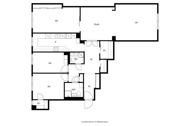 muassa keittiö, kylpyhuone ja erillinen wc. Pohjaratkaisu on