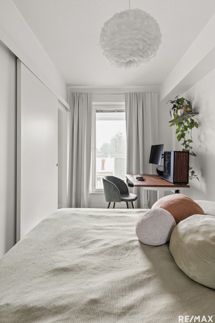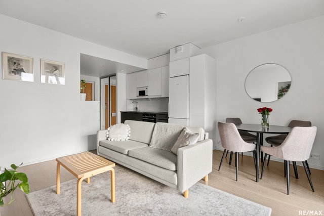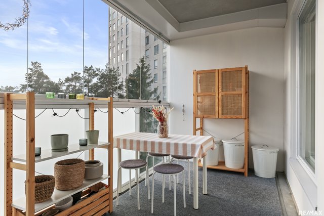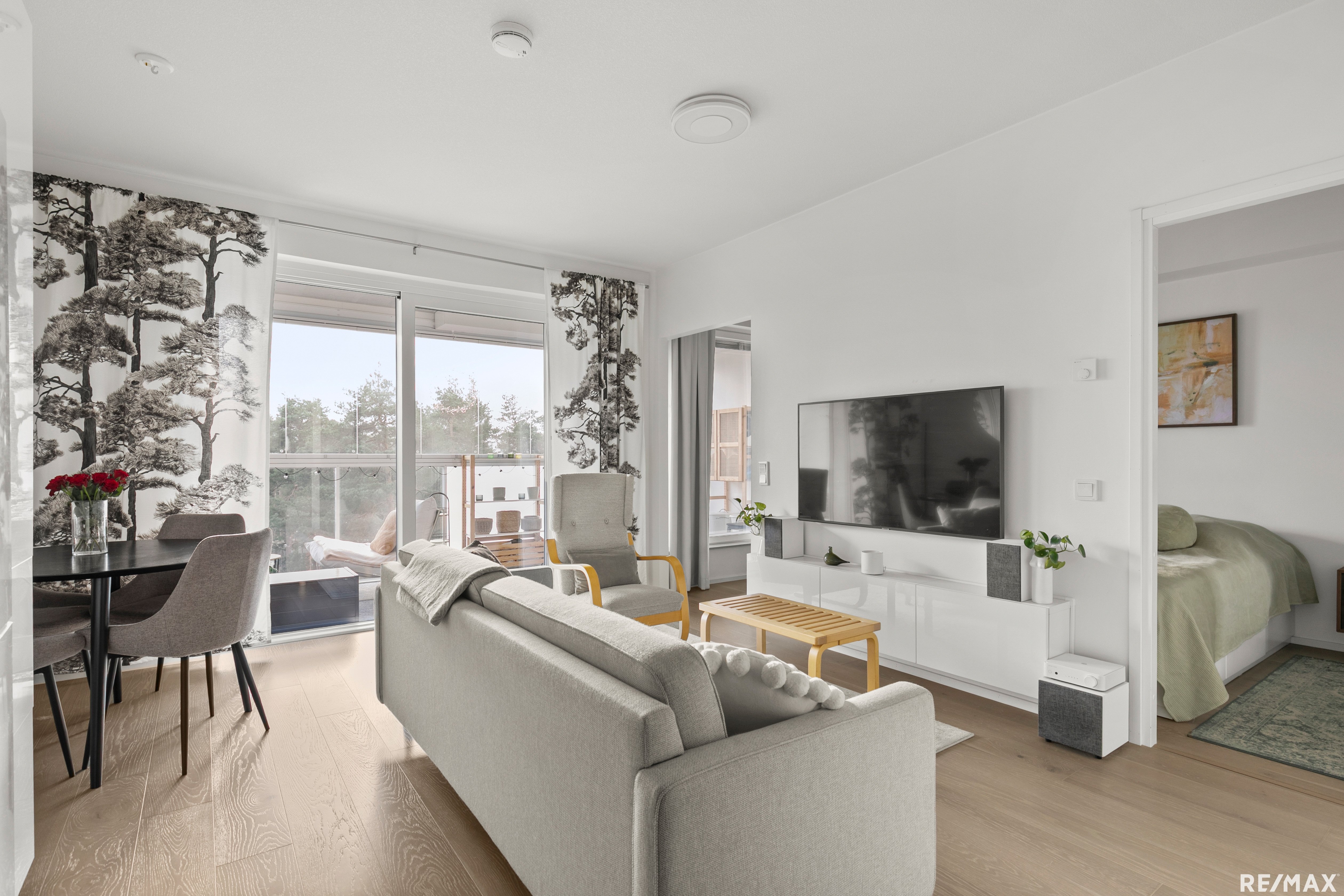 Tässä kodissa avokeittiö ja olohuone muodostavat kodikkaan kokonaisuuden ja suuri lasitettu parveke tuo asuntoon valoa ja tilan tuntua. Makuuhuoneeseen mahtuu parisänky ja työpiste ja oma sauna kruunaa päivän – paikka, jossa voi hengähtää ja rentoutua omassa rauhassa. Kaikissa huoneissa on lattialämmitys, ja arkea helpottaa myös oma autohallipaikka, joka myydään erillisenä osakkeena.