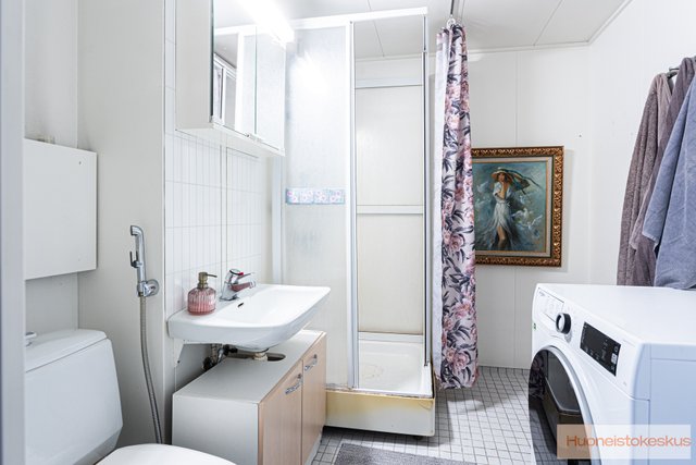 - Suihkukaappi, bidee-suihku, allaskaappi, wc-istuin, peilikaappi, ja pesuallas