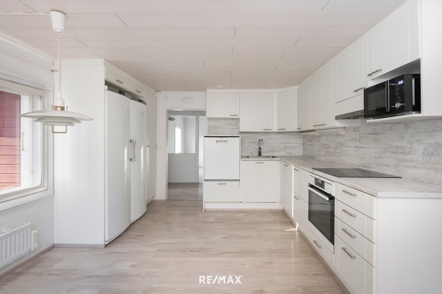 - Vuonna 2017 tyylikkäästi remontoitu vaalean sävyinen keittiö. Paljon kaappi-ja lasku tilaa.