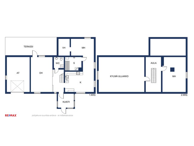 - Asuinpinta-ala on 104,5m2, kylmä kuisti 6,5m2, kylmä ullakko 47,5m2 sekä autotalli 27m2. Pinta-alatiedot ovat leimaamattomien rakennuspiirustuksien mukaiset. Pinta-aloja ei ole tarkistusmitattu.