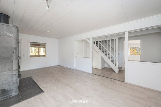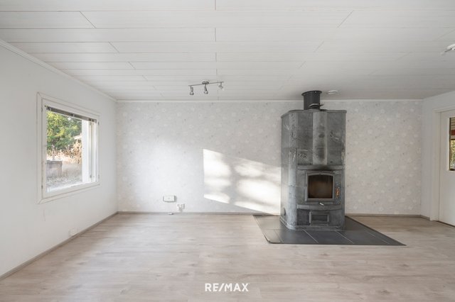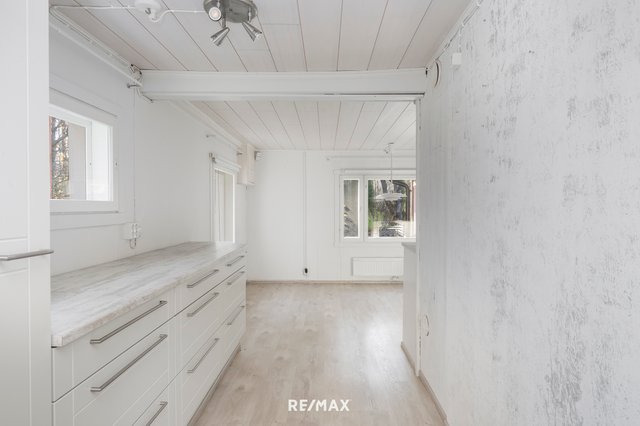 Samalla tehty pintaremontteja: sisäkatot ja lattiat uusittu keittiössä ja olohuoneessa.
