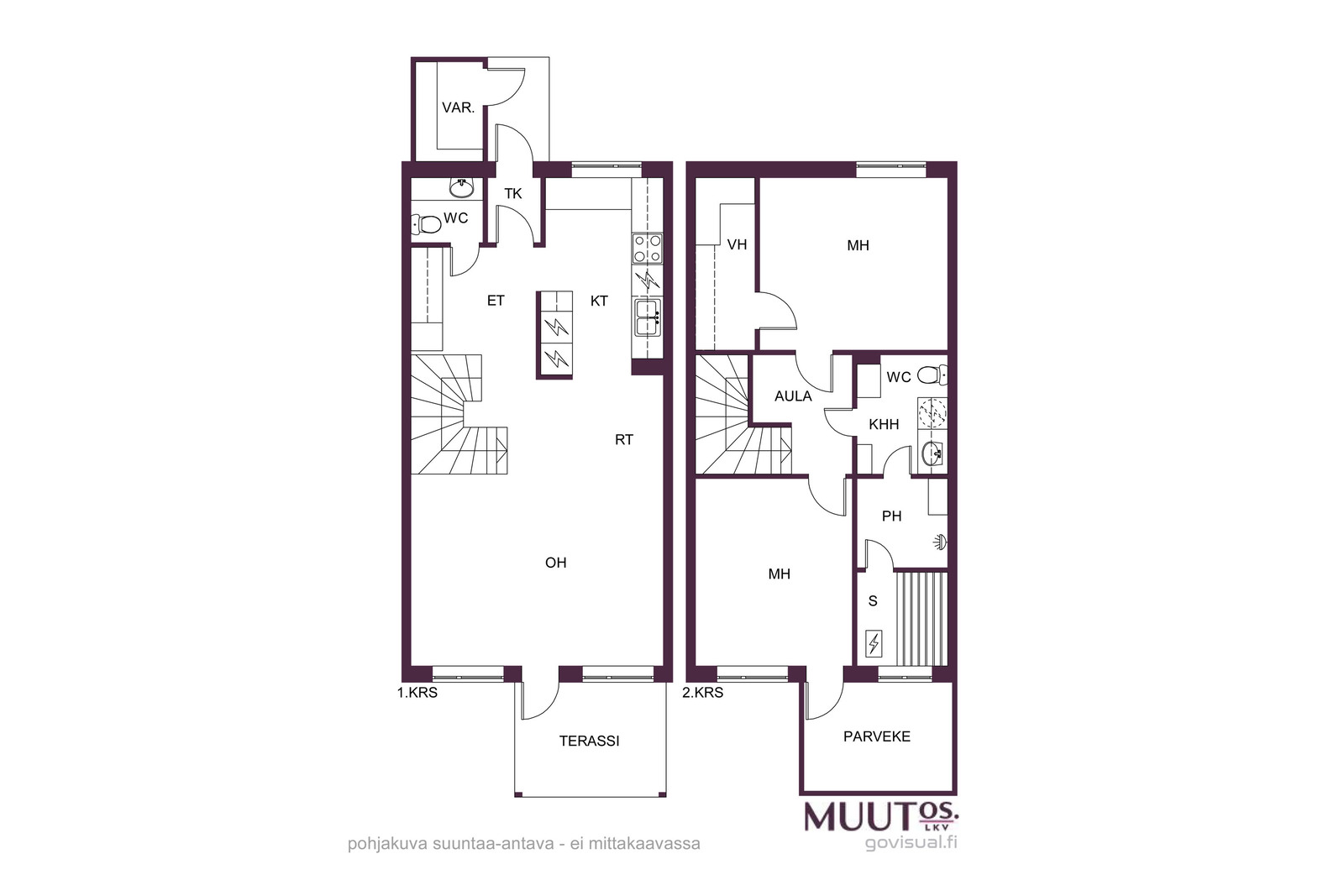 - Edellä mainittu pinta-ala saattaa tämän ikäisessä kohteessa poiketa olennaisestikin huoneiston nykyisen ja rakentamisaikaisen mittaustapojen ja standardien mukaan laskettavasta pinta-alasta. Huoneiston todellinen pinta-ala voi olla yhtiöjärjestyksessä, isännöitsijäntodistuksessa ja esitteessä mainittua pienempi tai suurempi. Hinta ei ole pinta-alaperusteinen. Yhtiöjärjestyksen mukainen huoneistoselitelmä on 3 h+k+s. Eri mittaustavoista johtuen varaston pinta-ala saattaa sisältyä ilmoitettuun asuintilojen pinta-alaan.