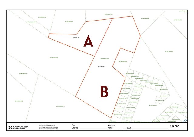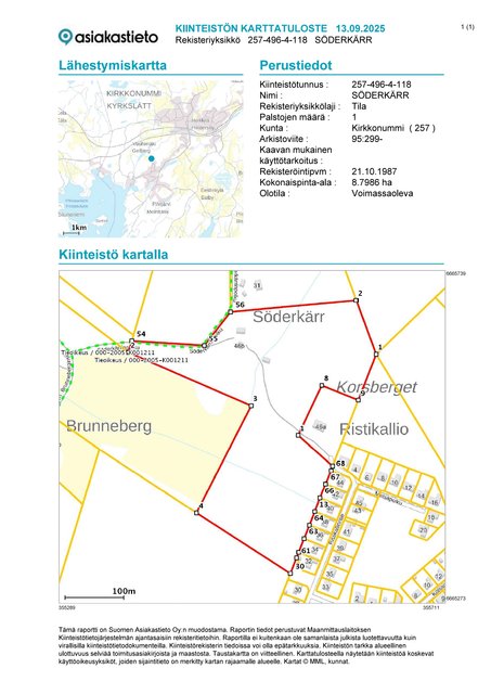 - Kirkkonummen kunta. Määräalalle kantatilalaskelman mukaisesti asuinrakennuspaikka. Kirkkonummen rakennusjärjestyksen mukaisesti.