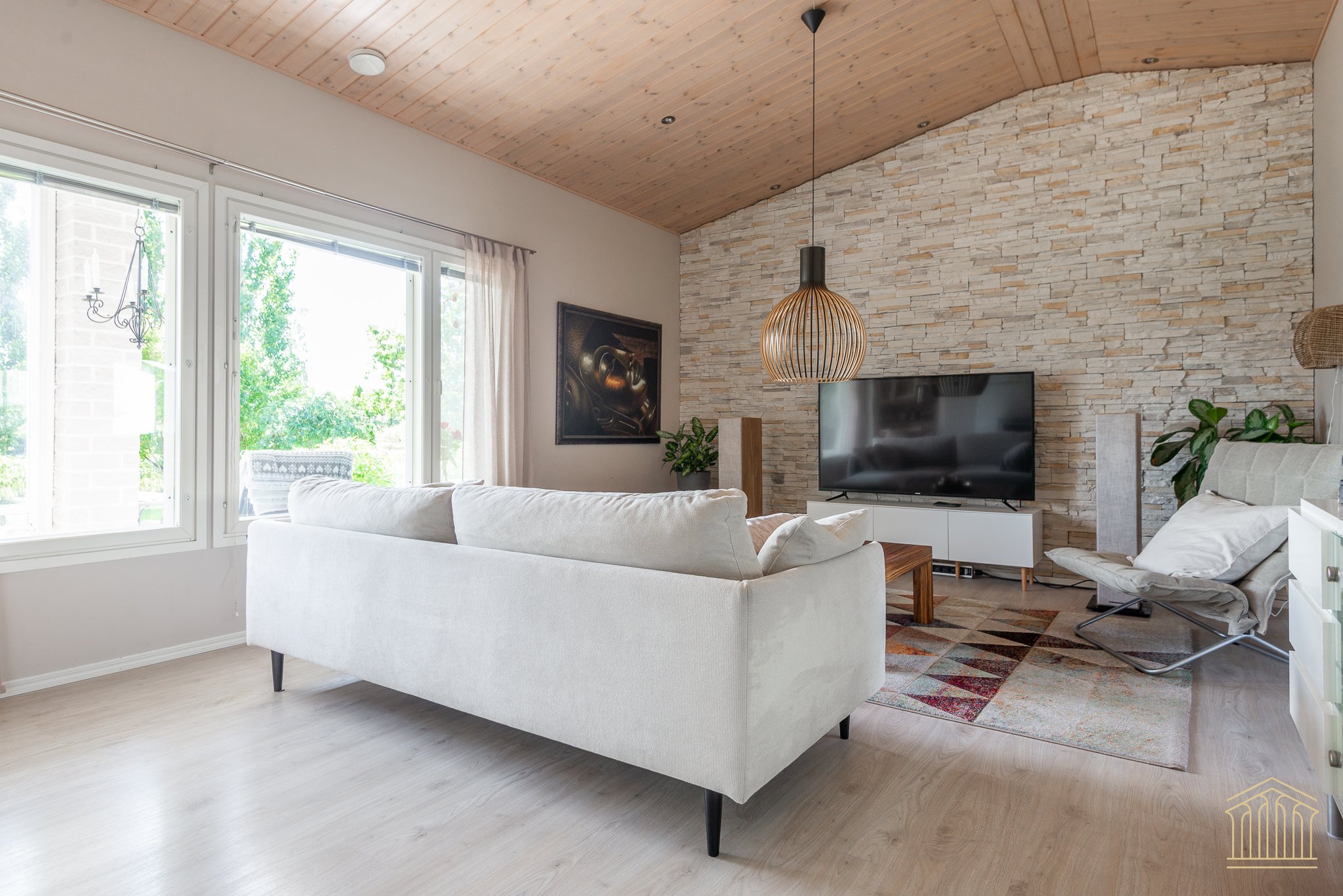 Tämän talon parhaimpia ominaisuuksia ovat toimiva pohjaratkaisu yhdessä tasossa, kahden auton lämmin autotalli sekä tyylikkäät pintamateriaalit sijaintia unohtamatta.