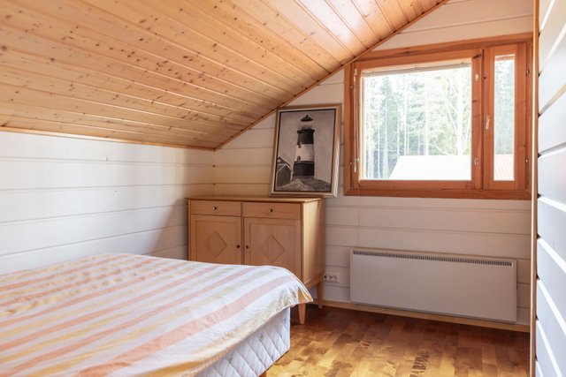 - Yhdestä yläkerran makuuhuonesta on kulku parvekkeelle.