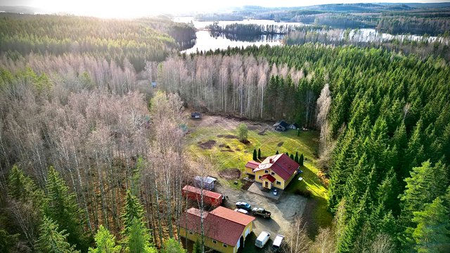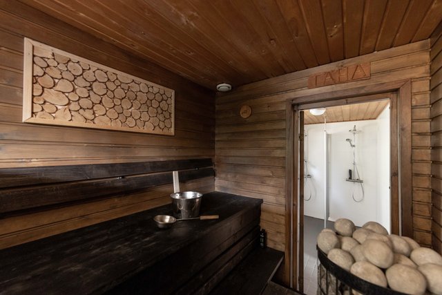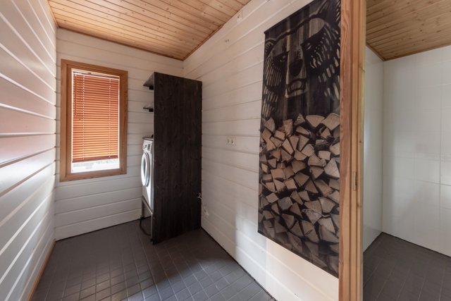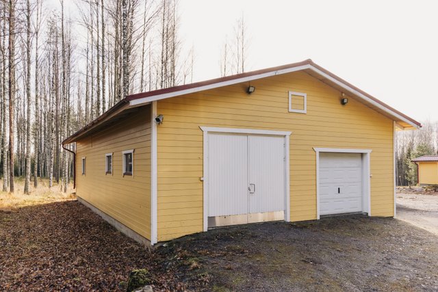Piha-alueella on myös 120 m2:n autotalli, jonka päädyssä miesluola omalla sisäänkäynnillä. Tontilla myös savusauna ja hirsinen puuvaja. Yhteisranta on vain lyhyen kävelymatkan päässä, ja siellä on 12 metriä pitkä laituri, joka houkuttelee nauttimaan järven rauhasta.