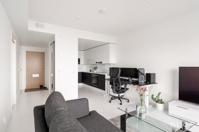 Tämä tyylikäs huoneisto kätkee sisäänsä laadukkaan avokeittiön, yhden makuuhuoneen ja kylpyhuoneen. Tilava parveke lisää huoneiston asuinneliöiden määrää kesäkuukausina ja sieltä aukeaa upea merinäköala ainakin pariksi vuodeksi.