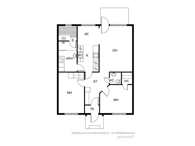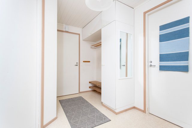 Asunnossa on kaksi makuuhuonetta, tilava olohuone ja käytännöllinen keittiö, jossa on kaikki tarvittavat laitteet, kuten jääkaappi, erillinen pakastin ja astianpesukone. Olohuoneesta on käynti omalle terassille, jossa voi nauttia rauhallisista hetkistä. Sauna tuo lisämukavuutta arkeen.