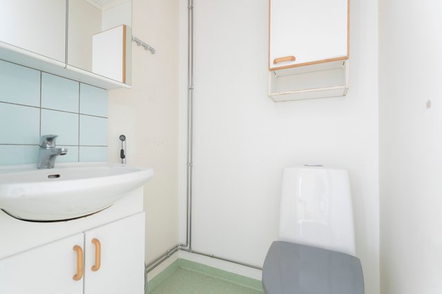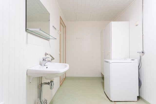 - Suihku, pesukoneliitäntä, peili, ja pesuallas