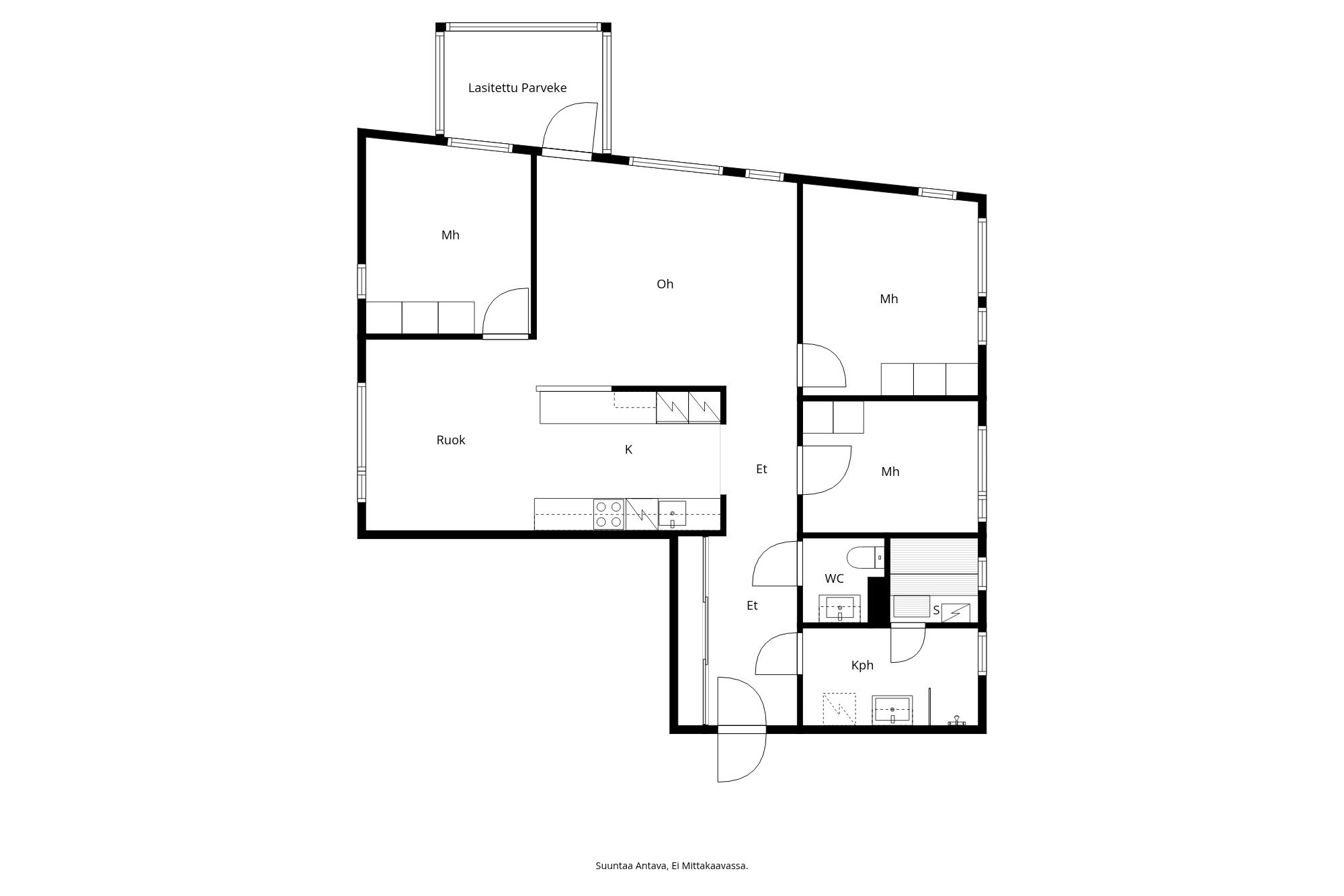 4-h+k+ruokailutila+kph+s+erillinen wc+lasitettu parveke
