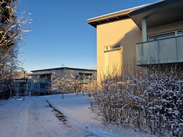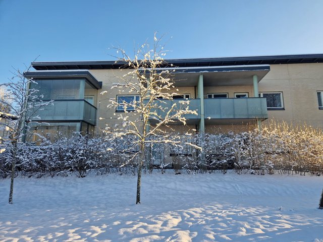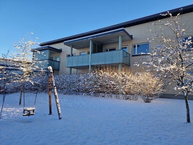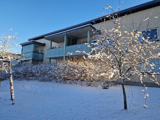- Asunnon takapihalla on nurmikkoa ja pihakiveysalue esim. oleskeluryhmälle, sekä pensasaita. Taloyhtiön piha-alueella on lasten leikkipaikka ja tamppausteline.