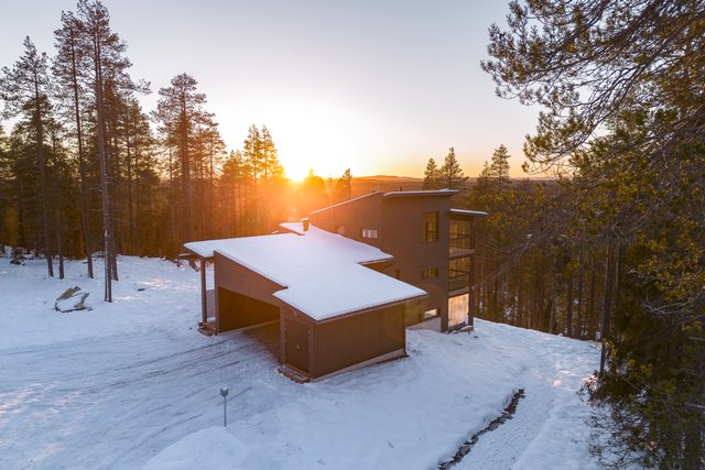 Tämä tyylikäs ja huolella rakennettu huvila avautuu kolmessa kerroksessa suoraan Kuusamon erämaan sieluun. Suurista ikkunoista avautuvat näkymät tuntureille, järville ja metsien rauhaan vaihtuvat vuodenaikojen mukana – kevään valosta syksyn hehkuun ja talven lumiseen hiljaisuuteen. Iltaisin taivaalla saattavat leikitellä revontulet, ja ympäröivä luonto tarjoaa harvinaista rauhaa, puhtautta ja hienovaraista mystiikkaa, joka saa arjen kiireet unohtumaan lähes huomaamatta.