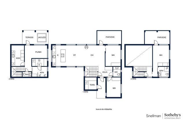 - Makuuhuoneita on virallisesti kolme, mutta kellarikerroksen huoneeseen mahtuu hyvin kahdelle tarkoitettu avattava sohva (kts. kuva).