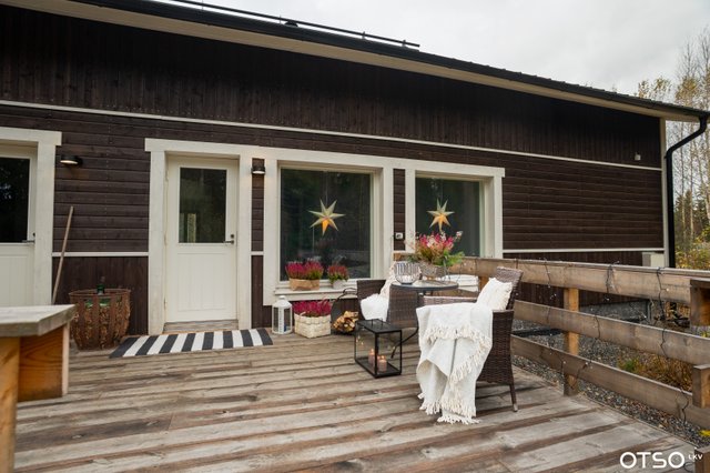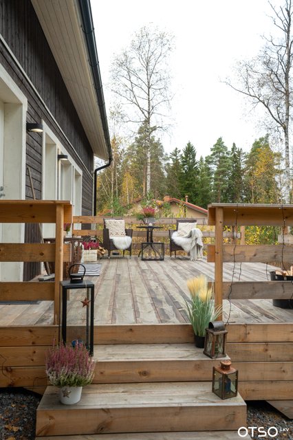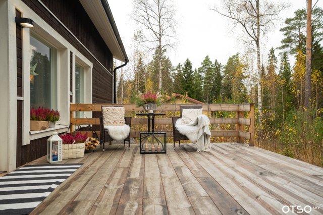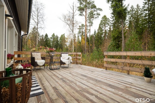 - Takapihalle puiston puolelle vahvasta puutavarasta upea terassi