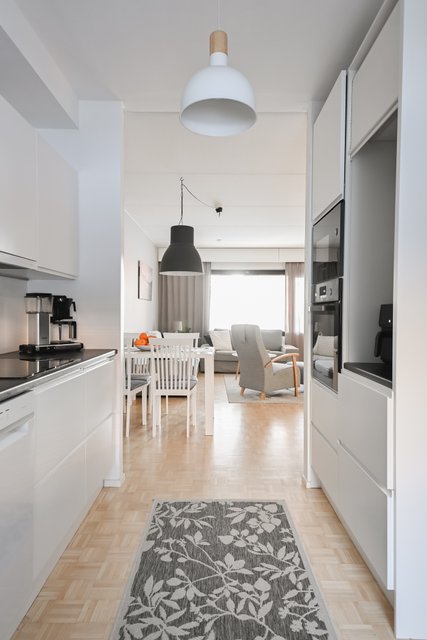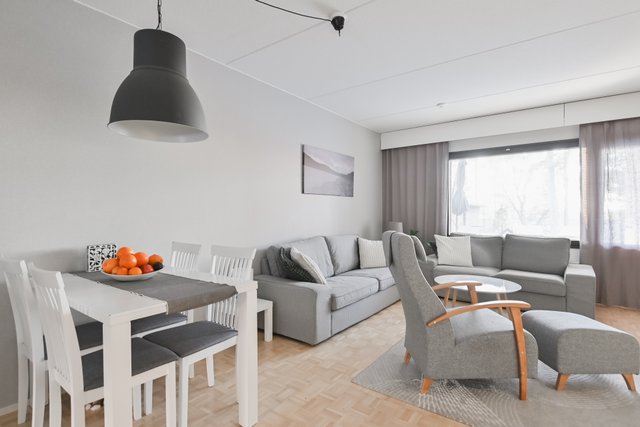 Sijainti on erinomainen: hyvät liikenneyhteydet, sujuvat pyöräilyreitit ja lähistöllä oleva bussipysäkki tekevät liikkumisesta vaivatonta.