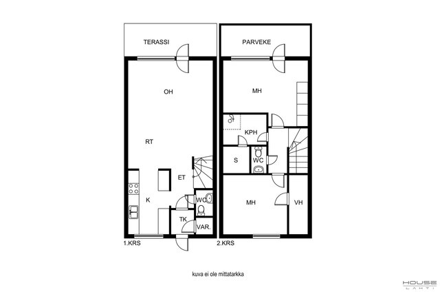 Oh, k, 2 x mh, 2 x wc, vh, terassi, parveke, kylmä varasto, autokatospaikka