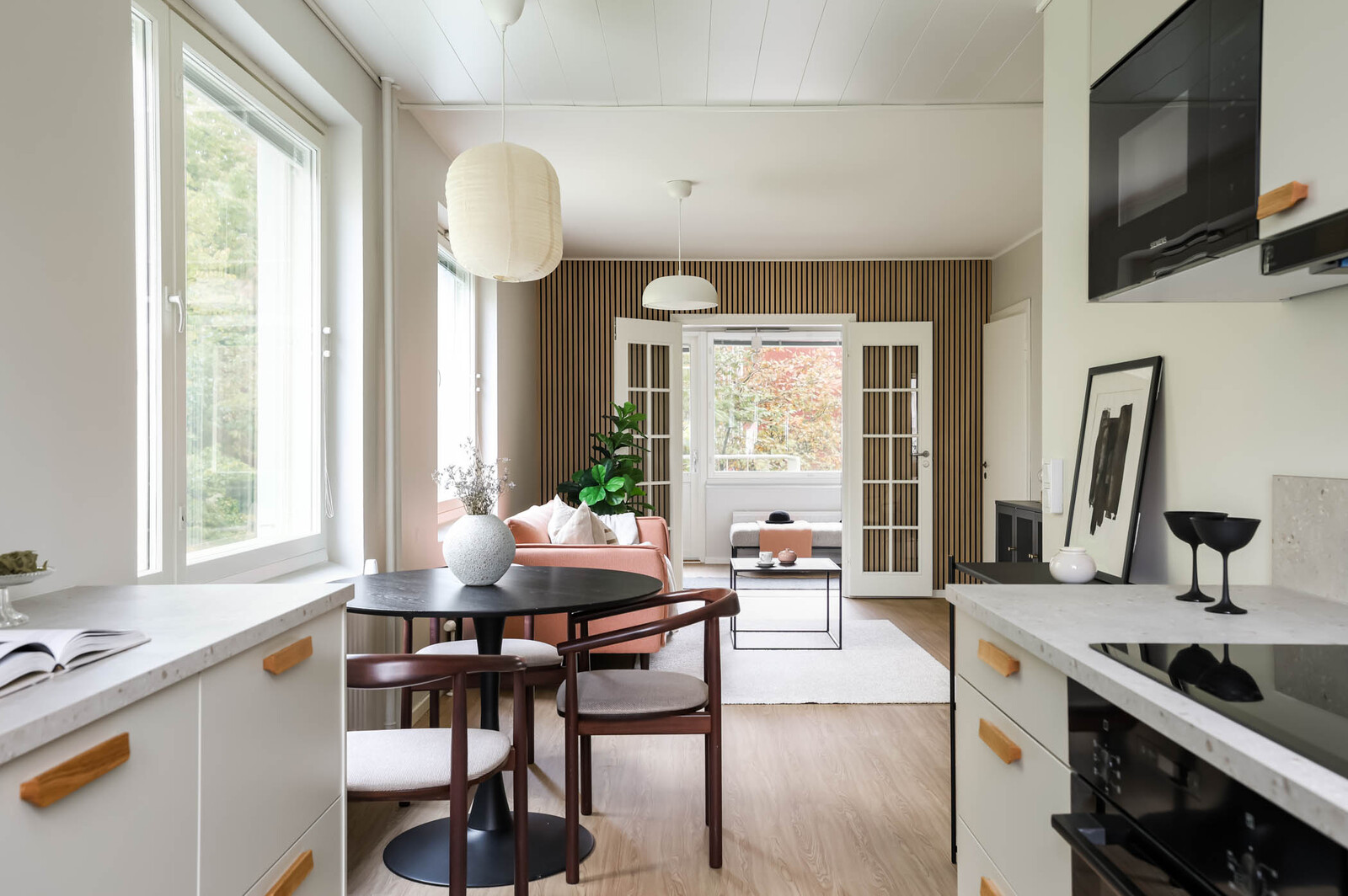 Nyt olisi tarjolla erittäin kaunis remontoitu koti suositulta Sammonkadulta! Tämä koti on juuri saanut kokonaisvaltaisen uuden ilmeen: skandinaavinen värimaailma, laadukkaat materiaalit ja hyvä pohjaratkaisu tekevät varmasti vaikutuksen. Myös huoneiston sähköt on uusittu kokonaan remontin yhteydessä. Olohuone on keskeisellä paikalla ja päätyasunnon hyviin puoliin kuuluu se, että valoa tulee kolmesta suunnasta. Keittiössä on tasot molemmin puolin tuoden tarvittavat lasku- ja säilytystilat. Parvekkeen viereinen huone toimii hyvin työhuoneena ja mahtuu sinne tarvittaessa sänkykin. Muissa makuuhuoneissa ja eteisessä on paljon kaappitilaa säilytykseen!
