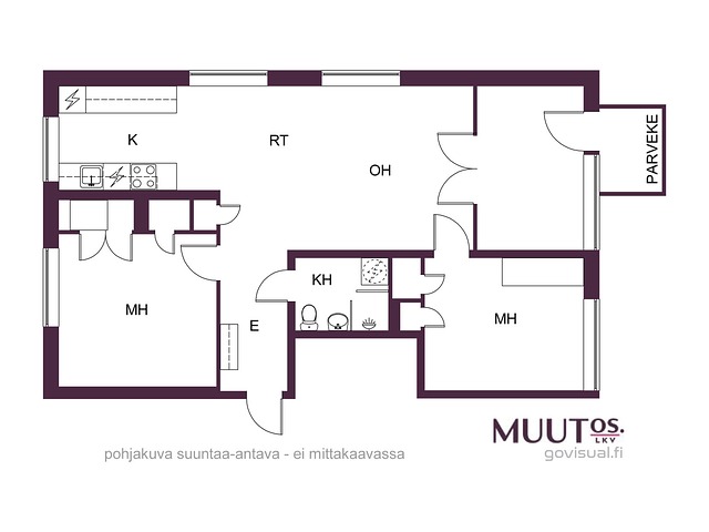 - Edellä mainittu pinta-ala saattaa tämän ikäisessä kohteessa poiketa olennaisestikin huoneiston nykyisen ja rakentamisaikaisen mittaustapojen ja standardien mukaan laskettavasta pinta-alasta. Huoneiston todellinen pinta-ala voi olla yhtiöjärjestyksessä, isännöitsijäntodistuksessa ja esitteessä mainittua pienempi tai suurempi. Hinta ei ole pinta-alaperusteinen. Yhtiöjärjestyksen mukainen huoneistoselitelmä 3h+k+p.