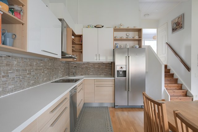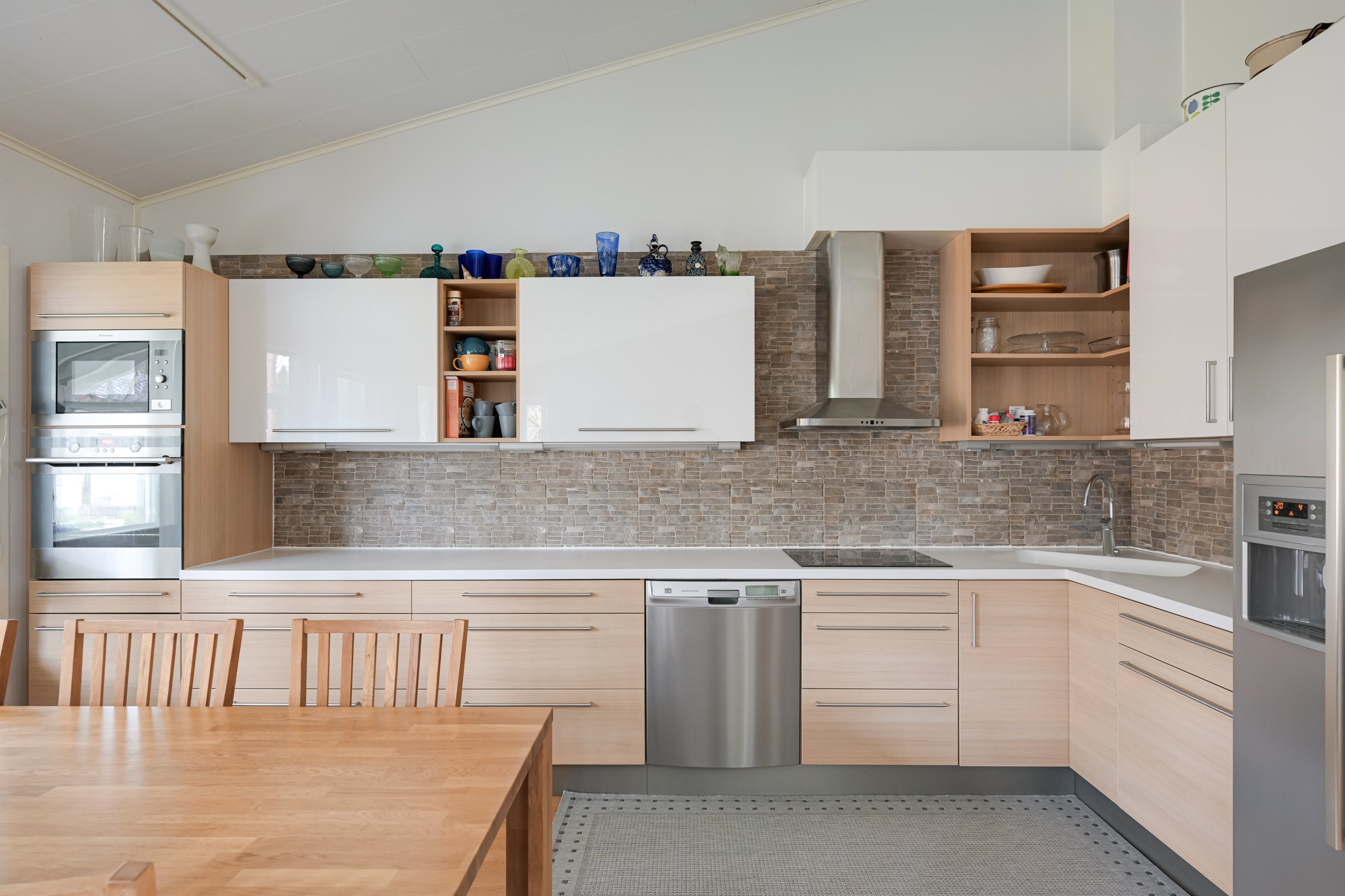 - Jääkaappipakastin (Side by side jääpalakoneella, Bosch), liesituuletin (Savo), mikroaaltouuni (Electrolux), astianpesukone (Electrolux), liesi (Electrolux), ja erillisuuni (Electrolux)