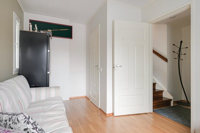 Vuonna 2009 valmistunut koti hurmaa toimivalla ja avaralla pohjaratkaisullaan. Sisääntulokerroksessa sijaitsee monikäyttöinen makuuhuone, joka soveltuu erinomaisesti esimerkiksi työhuoneeksi tai vaikkapa teinin omaksi tilaksi. Samasta kerroksesta löytyvät myös sauna, pesuhuone wc:llä sekä käytännöllinen kodinhoitotila, jotka tekevät arjesta sujuvaa ja mukavaa. Molemmat pesuhuoneet ja sauna ovat uusittu vuonna 2019, joten märkätilat ovat modernit ja hyväkuntoiset.