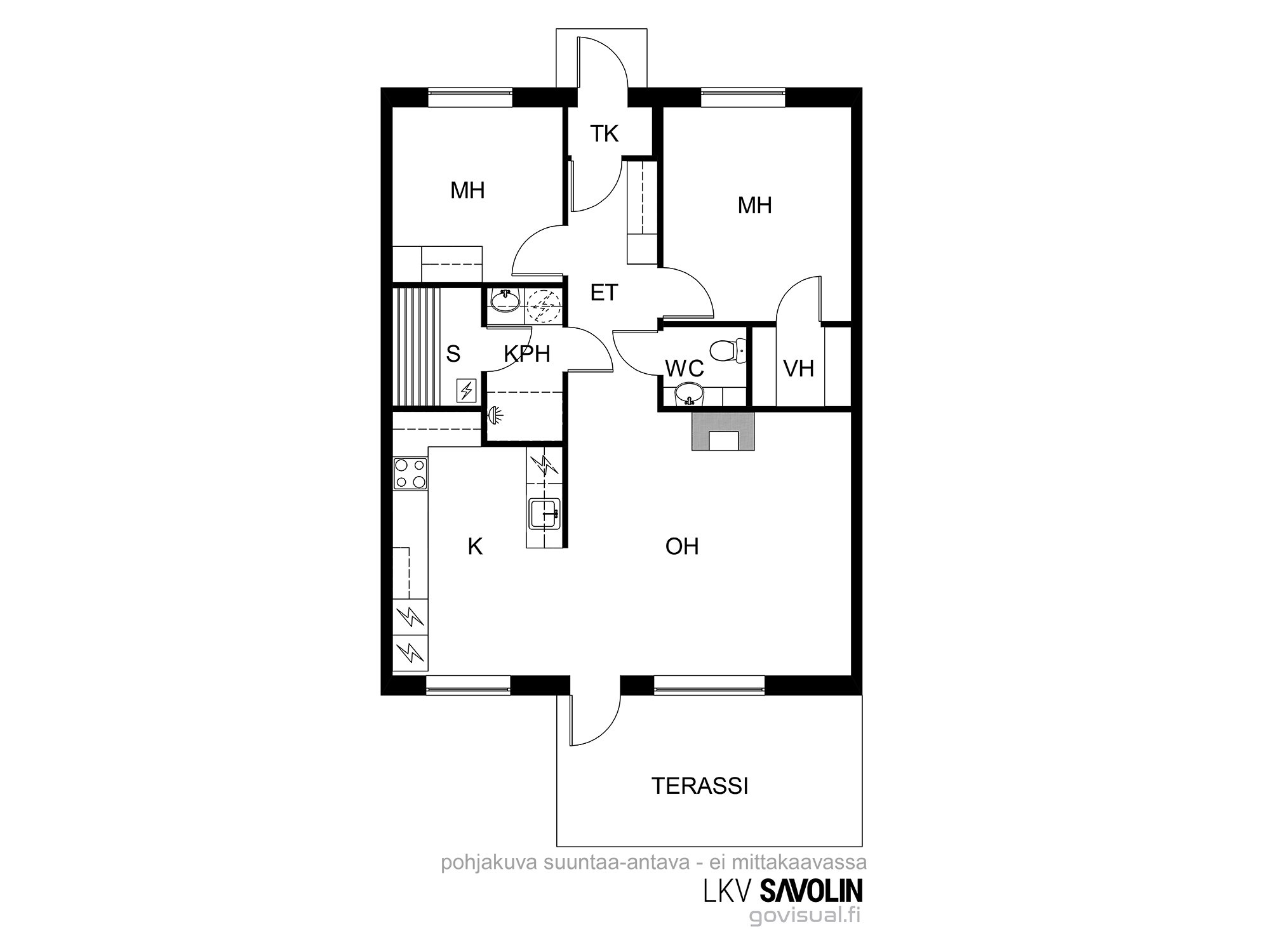 Hyvä ja toimiva pohjaratkaisu, makuuhuoneet sijoittuvat eteisen molemmin puolin ja yhtenäinen olohuone/keittiö sekä katettu terassi takapihan puolelle. Kesäisin suojaisalla ja varsin mukavan kokoisella pihalla voit nauttia päiväauringosta ja kuoputtaa välillä kukkapenkkiä.