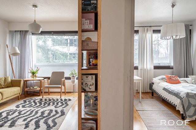 Kahden tilavan makuuhuoneen, keittiön ja valoisan olohuoneen asunto, jossa koko asunnon mittainen lasitettu parveke lisäämässä asumisviihtyvyyttä. Lasitettu parveke lisää ylimääräisen tilan käyttöaikaa syksyyn ja kevääseen. Isommassa makuuhuoneessa nykyisin jaettu tila kahdelle erilliselle makuutilalle, jossa molemmilla omaa työskentelytilaa. Lisäksi tilava ja näppärä kylpyhuone, jonne mahtuu hyvin pesukone. Taloyhtiö on omalla tontilla ja yhtiössä on juuri uusittu katto, yhtiötä on hoidettu aktiivisesti - jonka voit todeta 5-vuotissuunnitelmastakin.