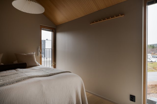 Makuuhuoneita on kaksi, ja ne on sijoitettu yläkertaan omaan rauhaansa. Molemmissa huoneissa on rauhoittava värimaailma, tilava vaatekaapisto ja kauniit näkymät ympäröivään maisemaan. Yläkerrassa on myös erillinen vaatehuone ja toinen wc, jotka lisäävät asumismukavuutta ja käytännöllisyyttä.