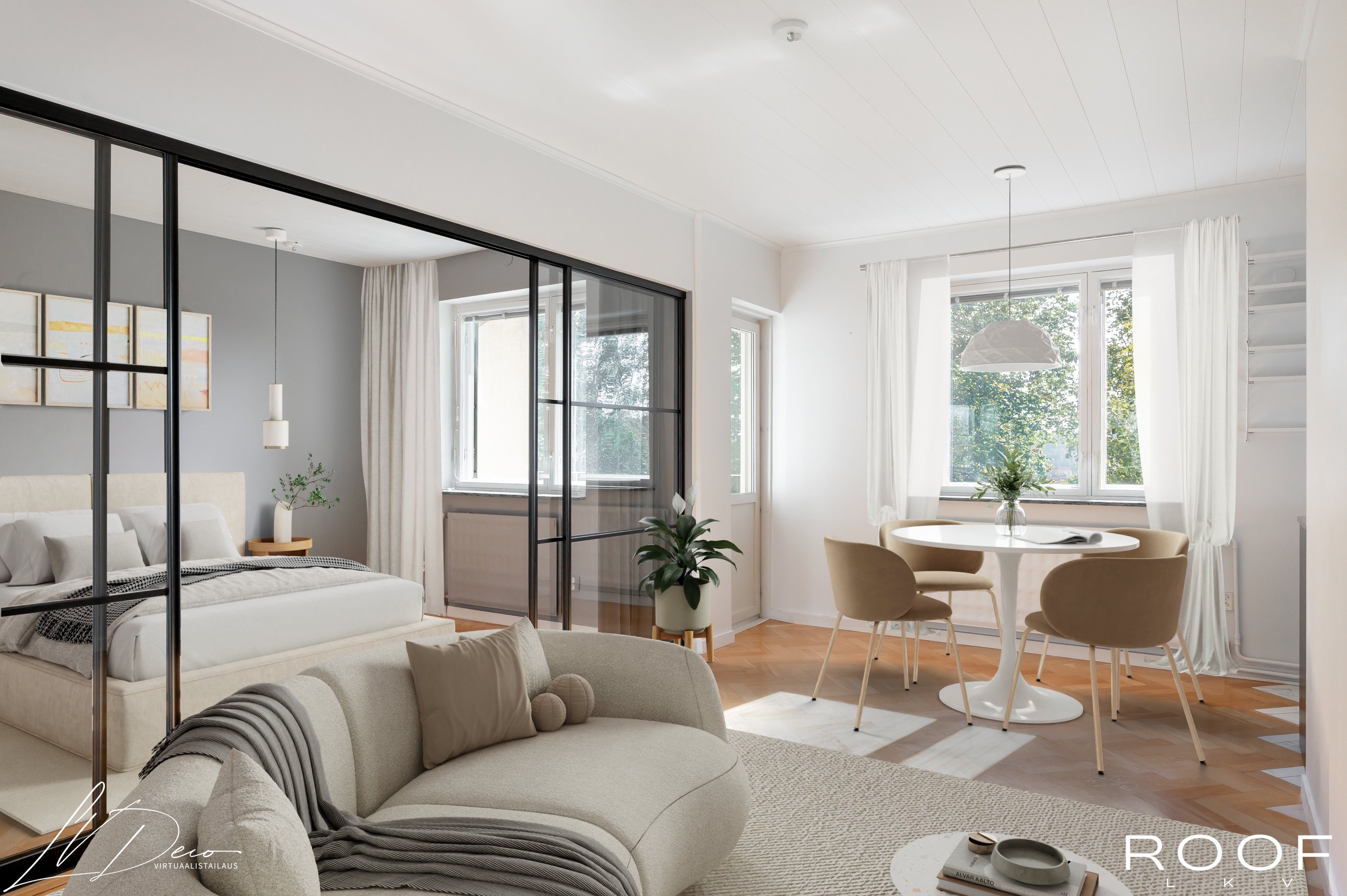 Tervetuloa tutustumaan tähän upeaan 39 m² kotiin, jossa jokainen yksityiskohta on tarkoin harkittu. Asunto on pintaremontoitu kauttaaltaan sisustusarkkitehdin suunnitelmien pohjalta vuonna 2020, ja lopputuloksena on moderni, laadukas ja ajaton kokonaisuus, jossa tilankäyttö on maksimoitu.