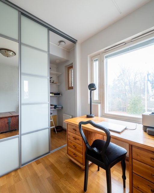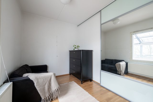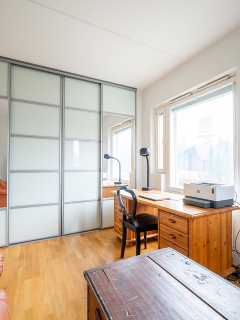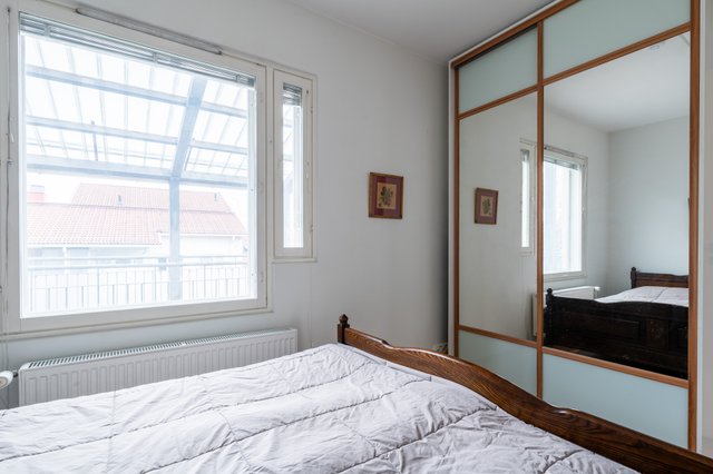 - Jokaisessa makuuhuoneessa on tilavat liukuovikaapistot/paljon säilytystilaa. Kulmahuoneen liukuovien takana pienellä ikkunalla varustettu nurkkaus, joka soveltuu vaikka etätyöpisteeksi, jos makuuhuoneen haluaa muuhun käyttöön. Kattoterassilla on markiisit, joka suojaa kesällä kuumimmalta paahteelta.