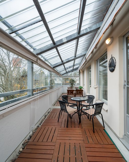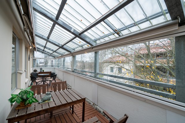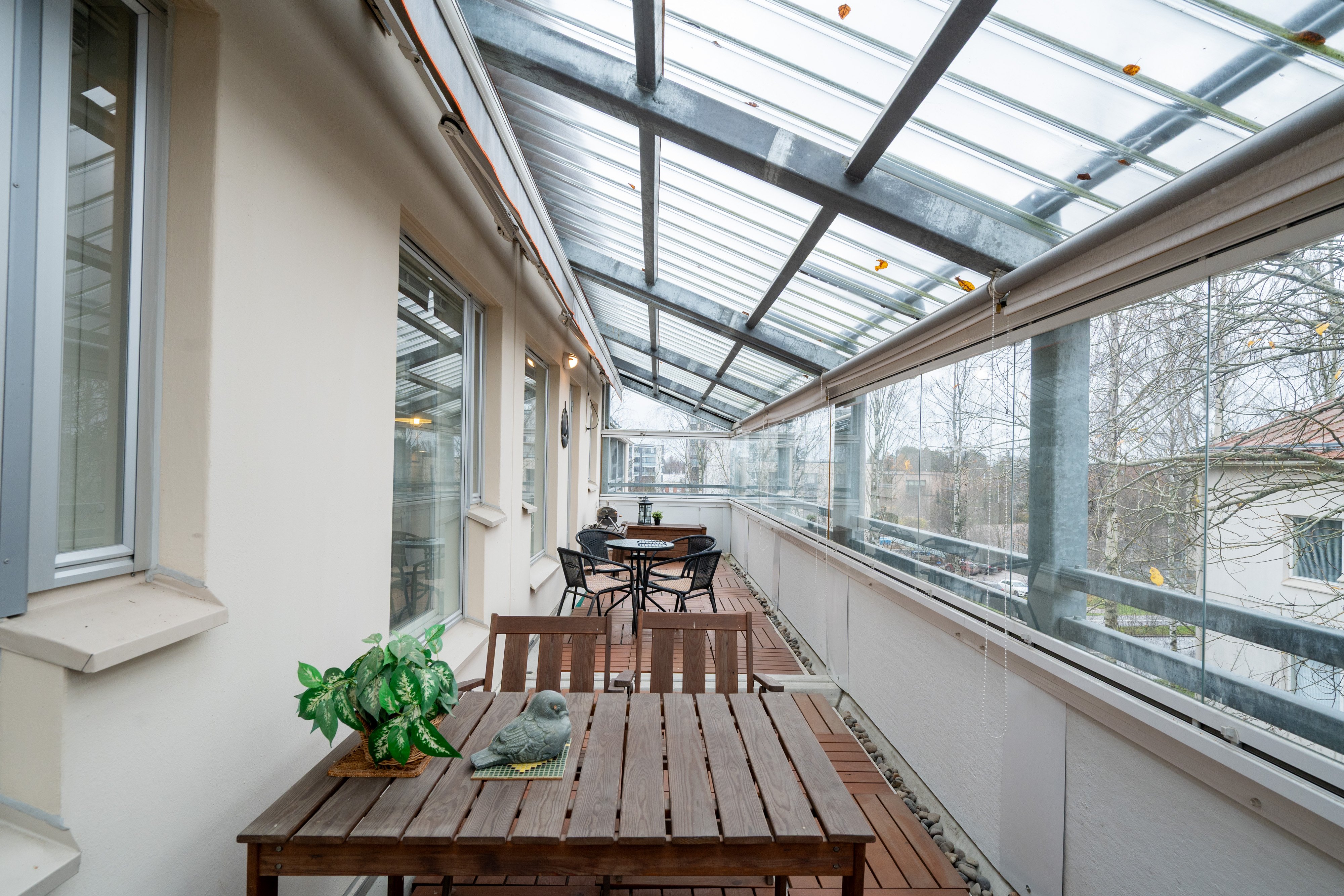 Valoisa ja avara kulmahuoneisto – isolla lasitetulla kattoterassilla!