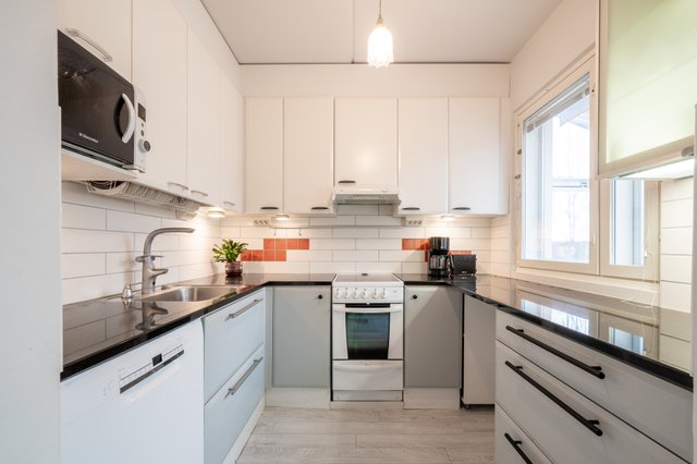 - Jääkaappipakastin, astianpesukone, liesituuletin, ja uuni