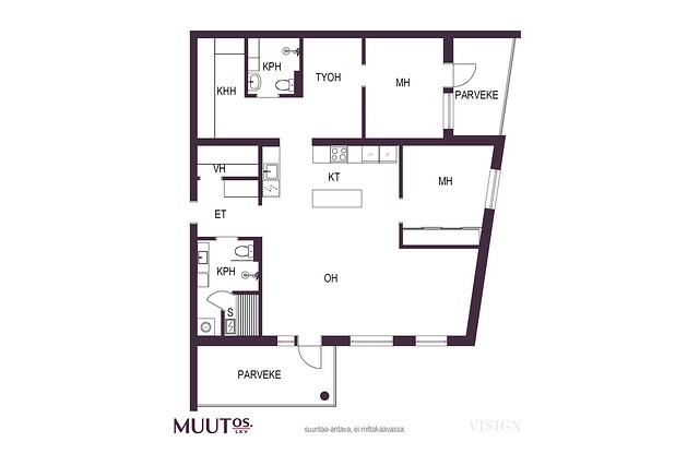 3h, avok, 2x kph / wc, s, khh, vh, 2x lasit.p,työtila