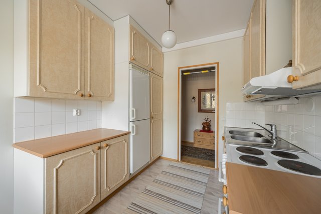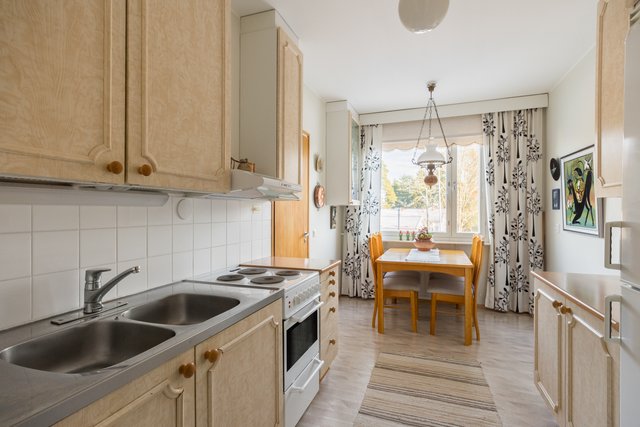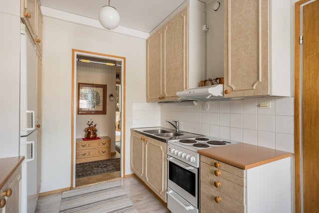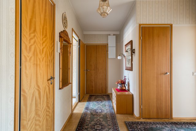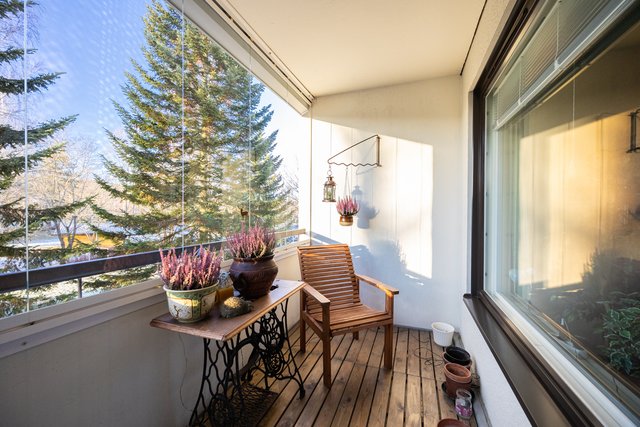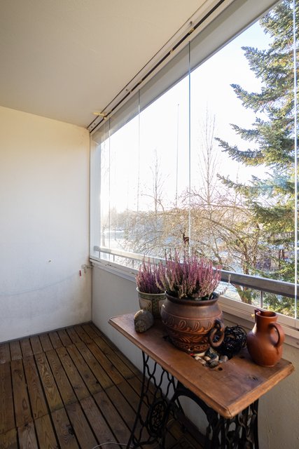 Kylpyhuone uusittu aikaisemmin taloyhtiön käyttövesiputkiremontin yhteydessä. Muutoin perussiistit pinnat ja hyväkuntoiset parketit asunnossa. Tänne muutat vaikka näin tai teet itsesi näköisen asunnon esim. seinien uusimisella. Loistava pohjaratkaisu, jossa erillinen wc ja vaatehuone helpoittamassa arkea. Erillinen keittiö, sekä reilun kokoiset huonetilat. Asunnon helmenä toimii lasitettu parveke puistonäkymin.
