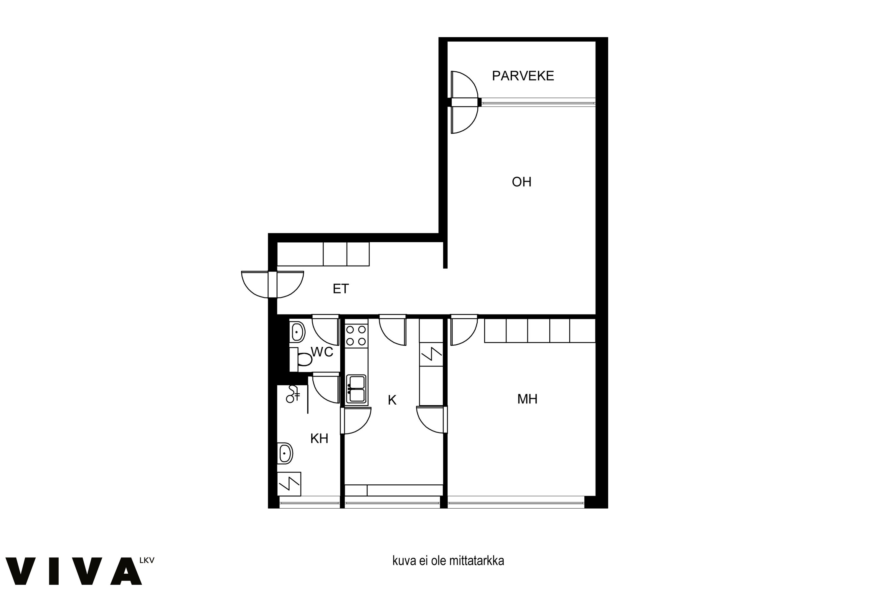 - Yhtiöjärjestyksen mukainen, Isännöitsijäntodistuksen mukainen, (Pinta-ala ei ole tarkistusmitattu ja todellinen pinta-ala voi olla suurempi tai pienempi, kuin ilmoitettu)