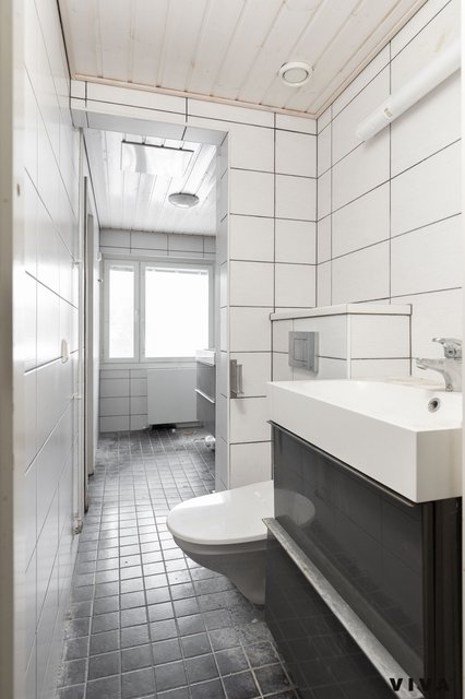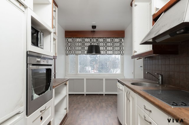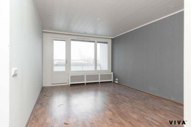 Vapaa huoneisto hissitalon ylimmässä kerroksessa. Avarat näkymät läpitalon huoneistosta ja lasitetulta parvekkeelta. Asunto on remontoitava.