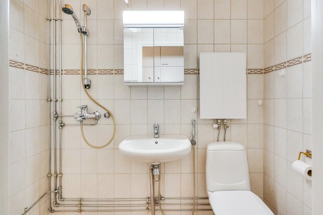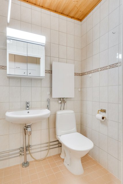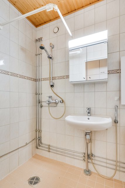 - Suihku, wc-istuin, pesukoneliitäntä, ja peilikaappi