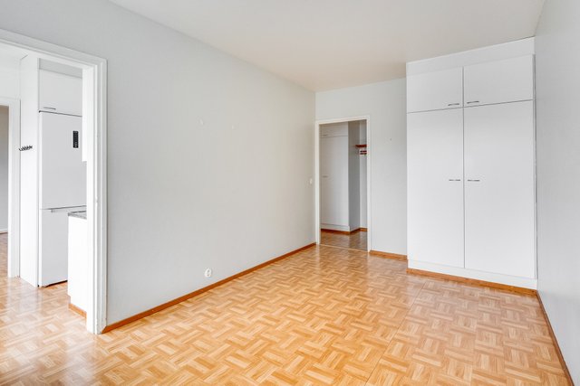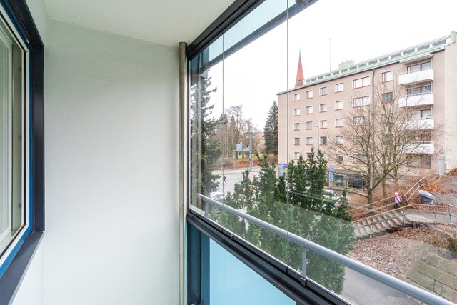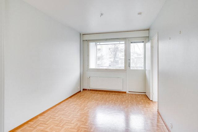 Makuuhuone on tavallista suurempi, tänne mahtuu hyvin jopa 180 cm leveä parivuode ja tilaa jää vielä työpisteellekin. Säilytystilaa löytyy mukavasti kaapistoista. Monen unelma, makuuhuoneesta käynti lasitetulle parvekkeelle, löytyy tästä asunnosta!